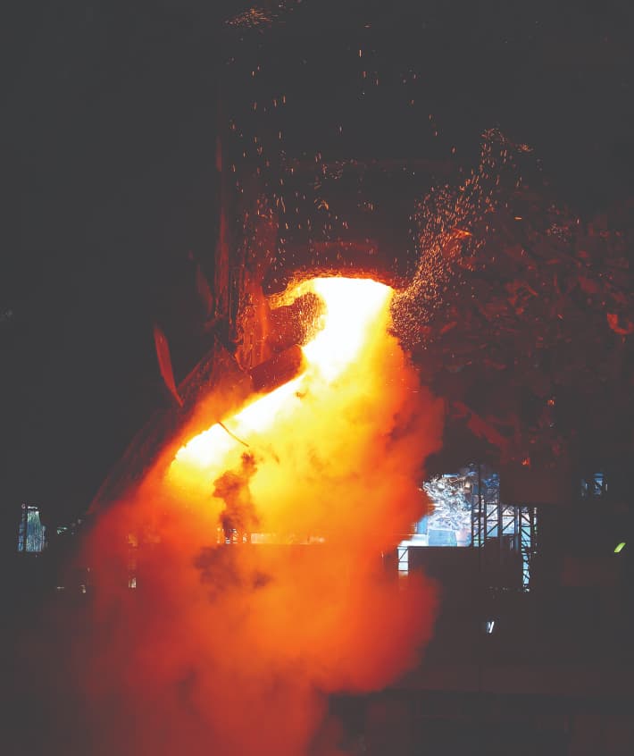 Arun Plus TMT bars are made by the ‘Quenching & Tempering’ process (Q&T) using German technology. Hot steel billets are reduced in size through a sequence of rolling stands, which progressively reduces the billet to the final size and shape of the reinforcement bar. In the Q&T process, hot rolled finished steel bars are given thermo-mechanical treatment over three successive stages of quenching, self-tempering and atmospheric cooling. This ensures an exceptional steel core formation.